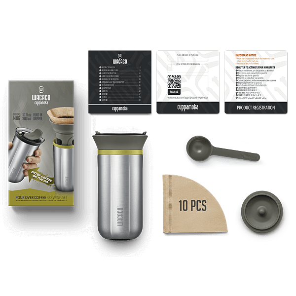 With complete control over crucial variables like water temperature, coffee saturation, and extraction time, the pour-over process is perfect for revealing the complex and subtle aromas that make your favorite coffee unique. Take your love for coffee to new heights and discover the traditional brewing process in an innovative portable format with Cuppamoka.