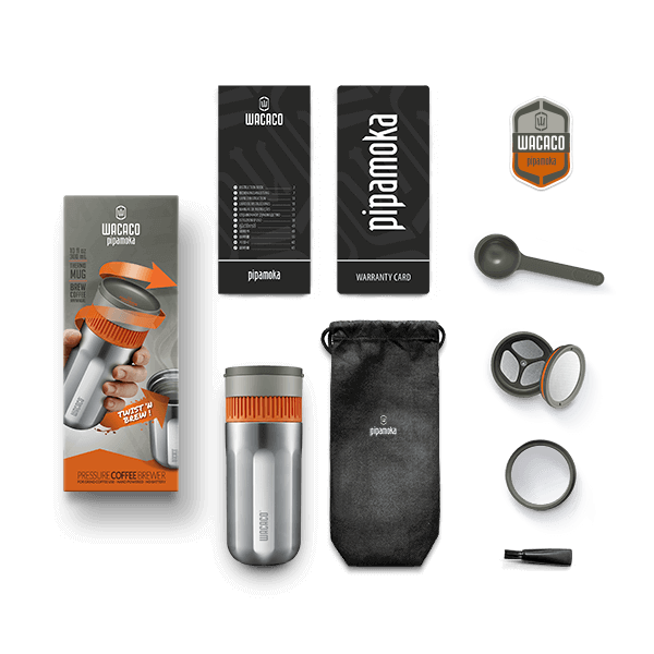 Brew and drink from a single device with the Pipamoka all-in-one nomadic coffee maker. Simple, sturdy, and brilliant pressure brewer, it becomes super easy and quick to fuel your days and enjoy hours of hot, freshly-brewed coffee during your commutes, work hours, or adventures. Designed and engineered by Wacaco, Pipamoka packs every tool you need to prepare and enjoy a perfectly balanced coffee. A new experience distilled right into your cup, anytime, anywhere.